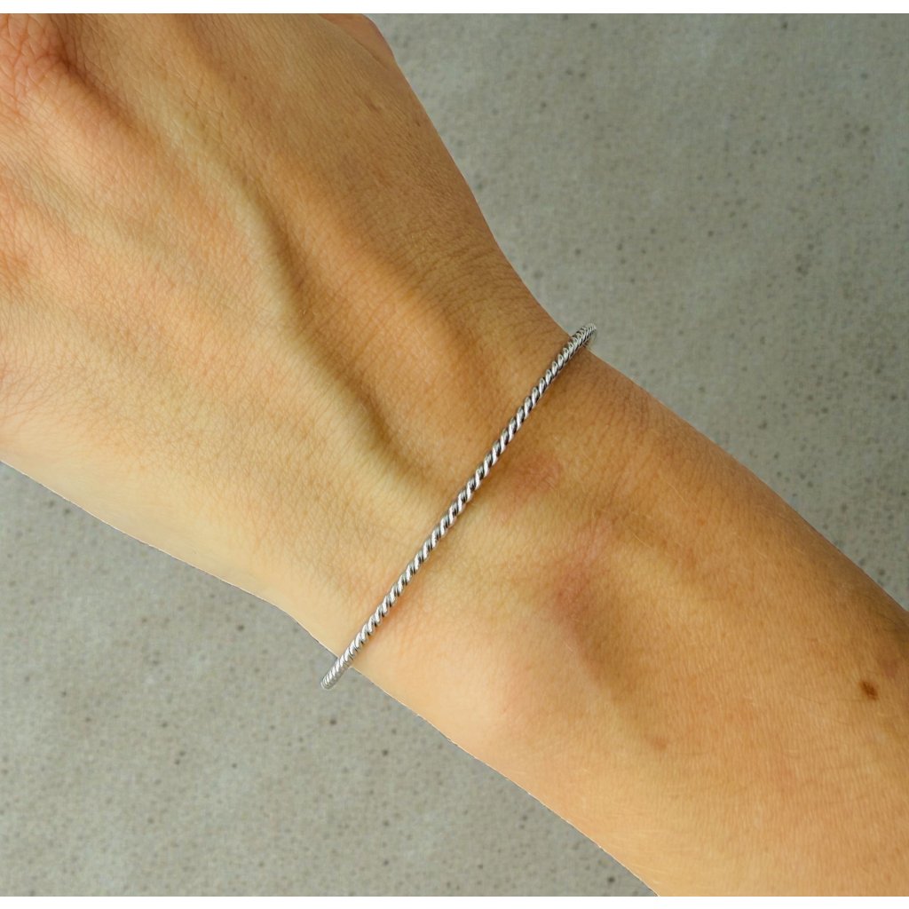 Lesklá chirurgická ocel. Kroucený design. Minimalistický náramek, který zaujme i bez zbytečných ozdob. Moderní elegance v pohybu.