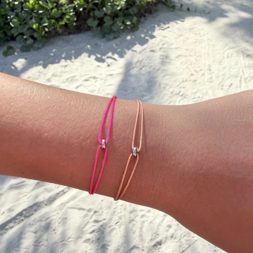 Minimalistický. Roztomilý. Neodolatelný. Náramek s donutem kombinuje dětskou hravost s čistým designem a odolným materiálem, který něco vydrží. Díky posuvným uzlíkům náramek pohodlně upravíte na požadovanou velikost.